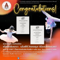 Congratulations to Miss Thara Lengsiriwatthanakul (LOM-MHOK), a KG.2 student, for her outstanding achievement as the only Thai participant to place in the TOP 5 at the Frankfurt International Ballet Competition 2025