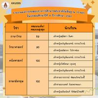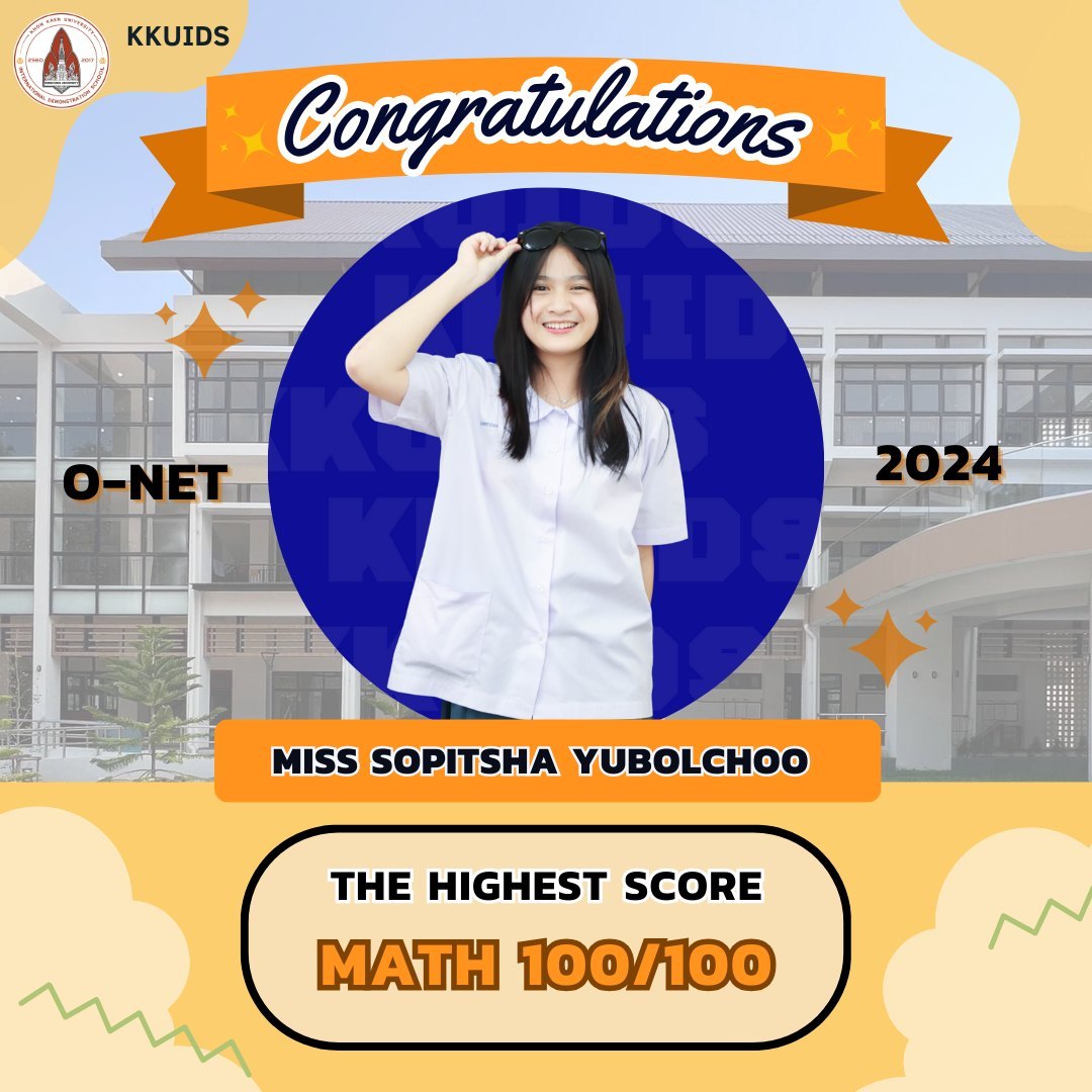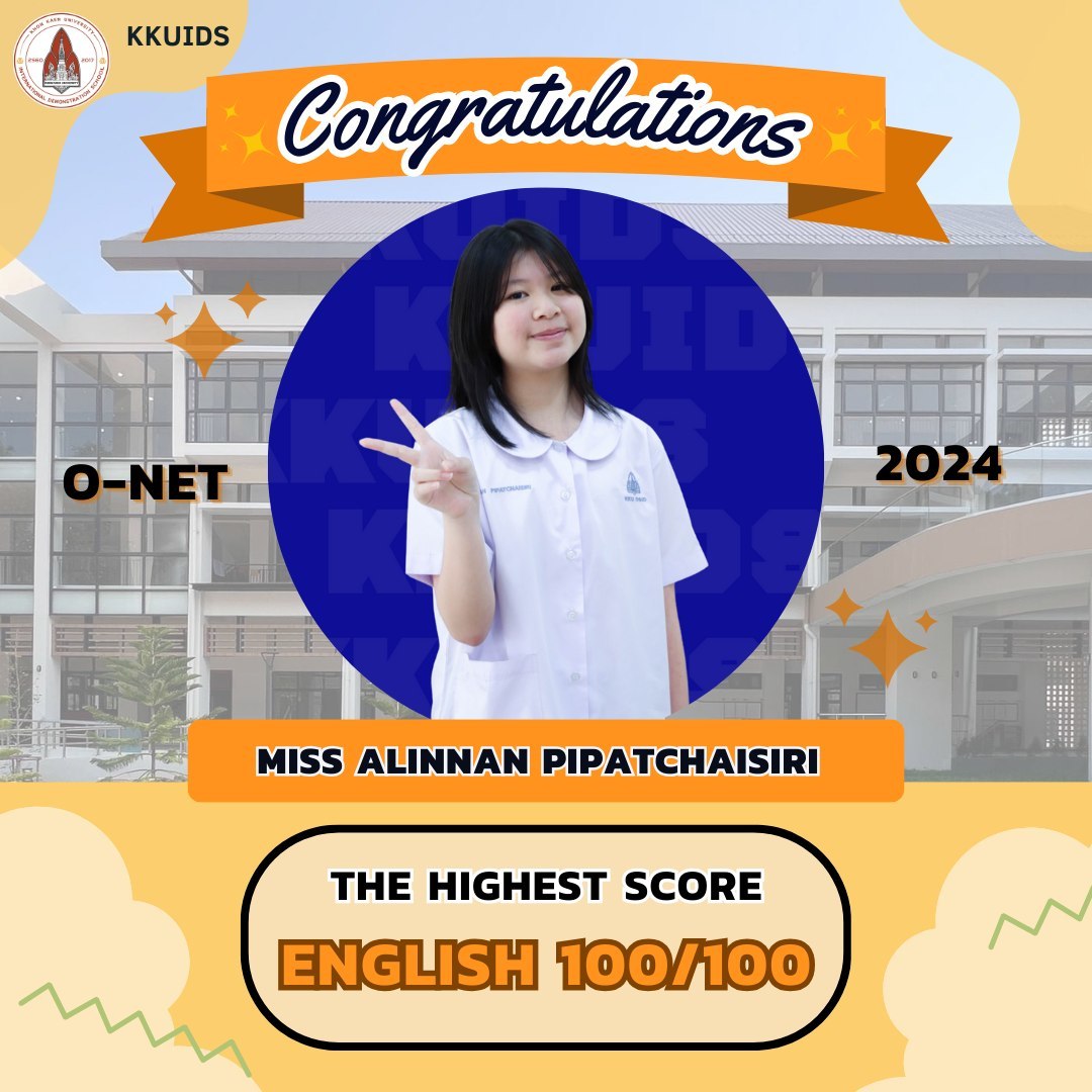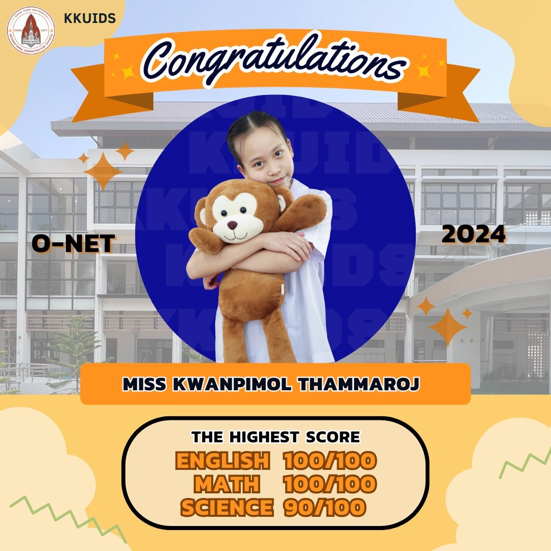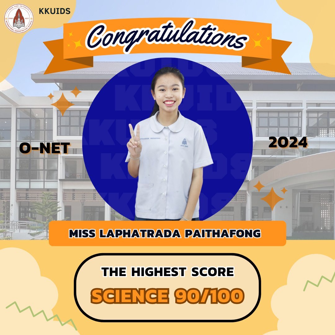 1. Miss Kwanpimol Thammaroj got full scores in English and Math and achieved the highest score in Science.